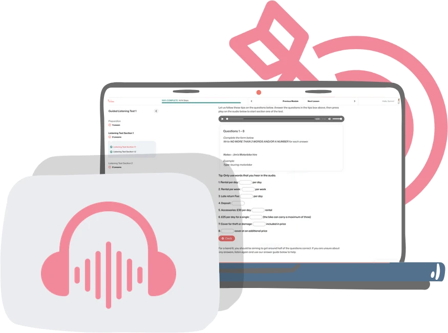 Our guided listening tests help you practise the test format and learn how answers can often be hidden through paraphrase and distraction.